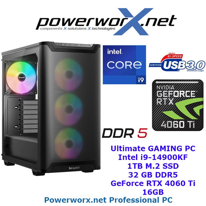 High End Gamer PC i9-14900KF 24x 3,0 Ghz nvidia GeForce RTX 4060 8GB GDDR6 32GB DDR5 1TB M.2 nvme SSD BeQuiet Tower LED