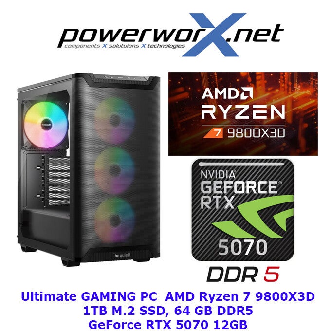 RyzenFire – ELITE Gaming PC AMD Ryzen 7 9800X3D, 64GB RAM, NVIDIA Geforce RTX 5070, 1TB SSD