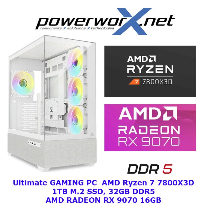 🔥 RyzenFire – ELITE Gaming PC AMD Ryzen 7 7800X3D, 32GB RAM, AMD RADEON RX 9070, 1TB SSD